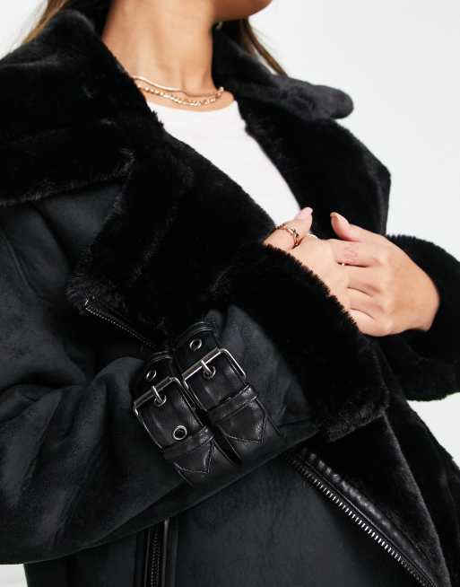 Black faux shearling aviator hot sale jacket