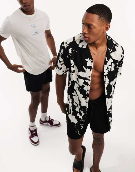 Black flower shirt hot sale mens