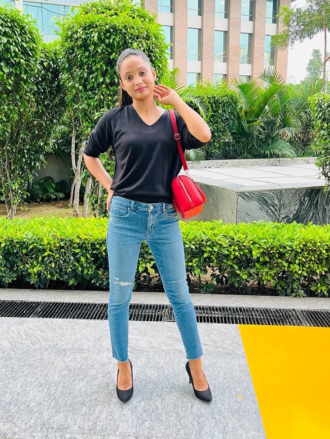 Black jeans with red stripe hot sale outfit