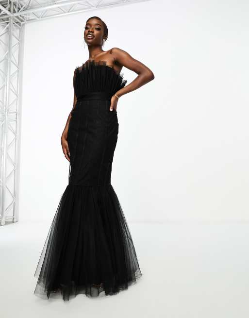 Black lace fishtail hot sale dress