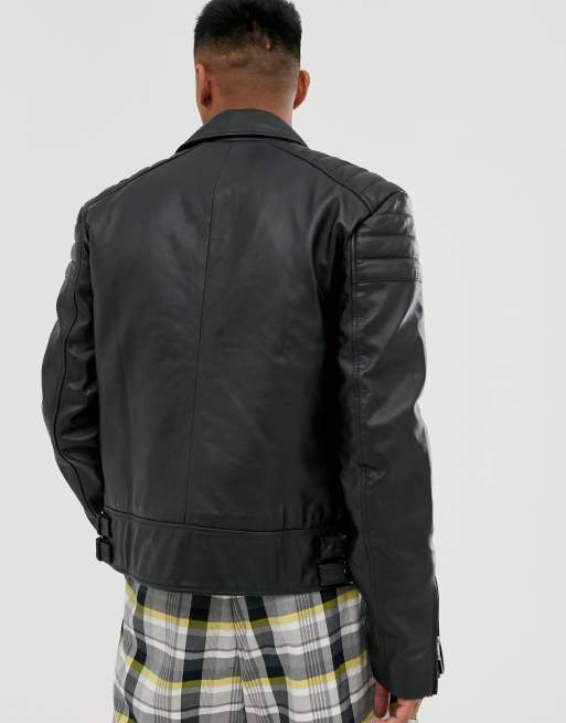 Black leather jacket with red hot sale inside