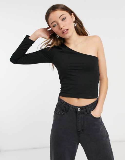 Black one shoulder long sleeve hot sale top