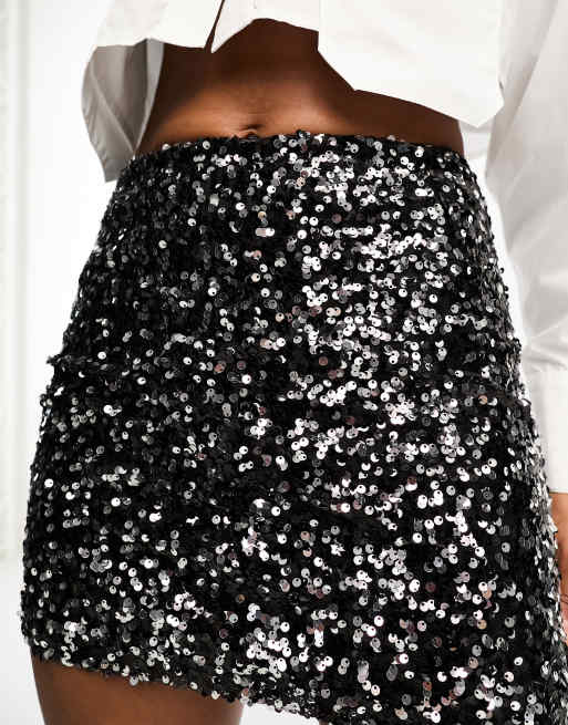 Black sequin pull on hot sale skirt