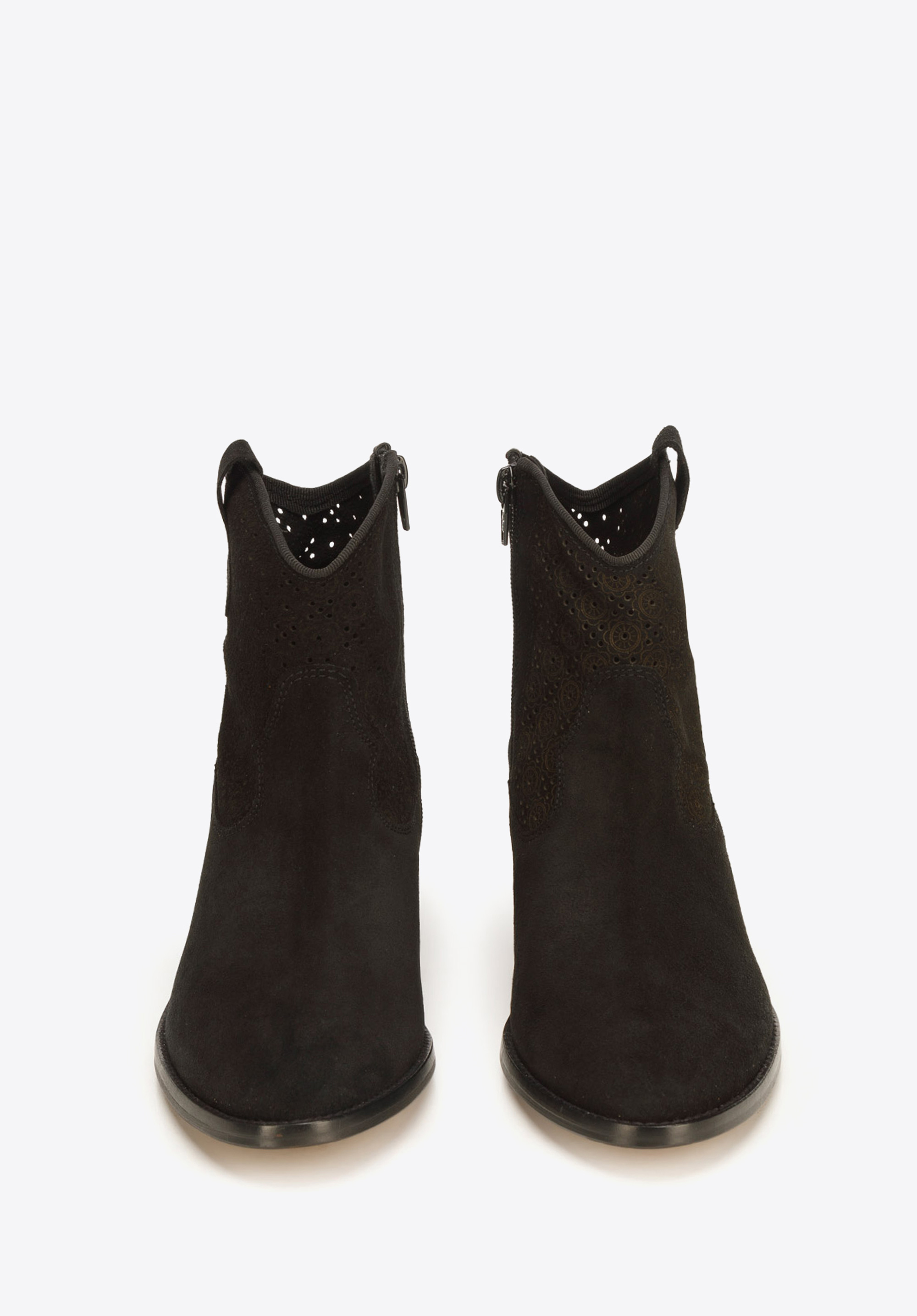 Product Item: Black suede cowboy ankle hot sale boots