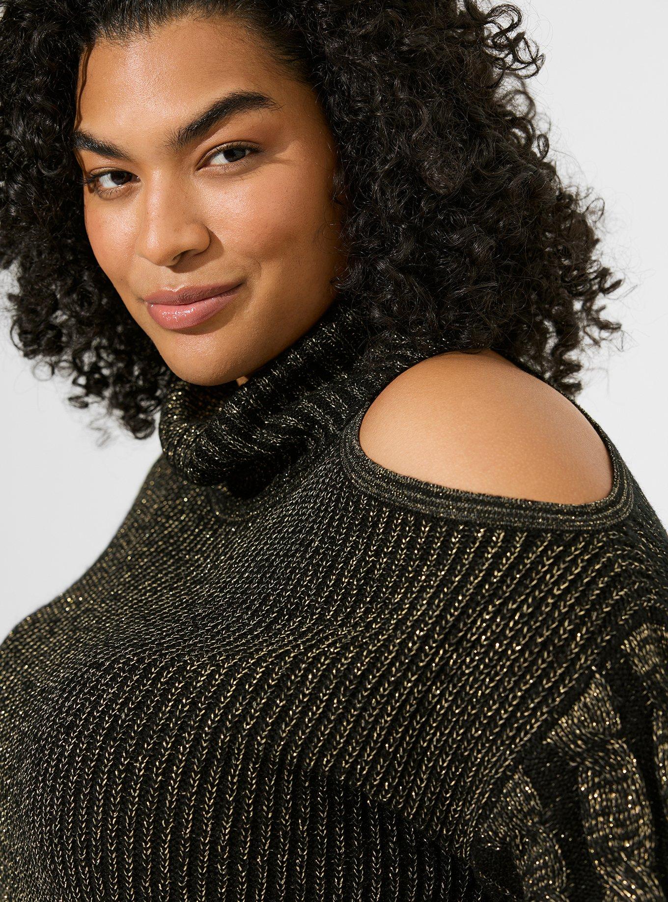 Black turtleneck cold shoulder hot sale top