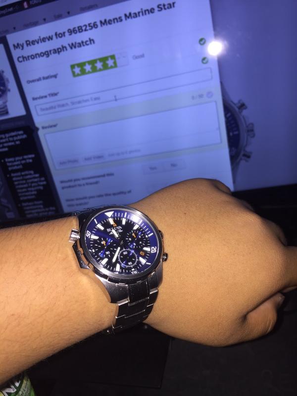 Product Item: Bulova men's chronograph marine star stainless steel bracelet watch hot sale 45mm