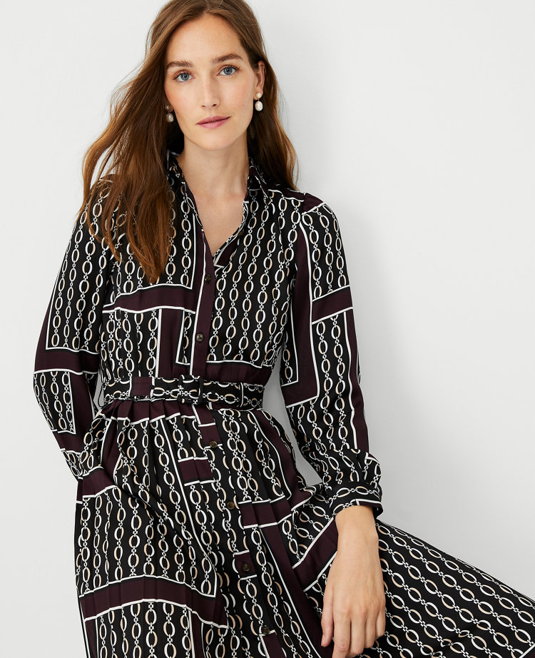 Chain print pleated hot sale dress