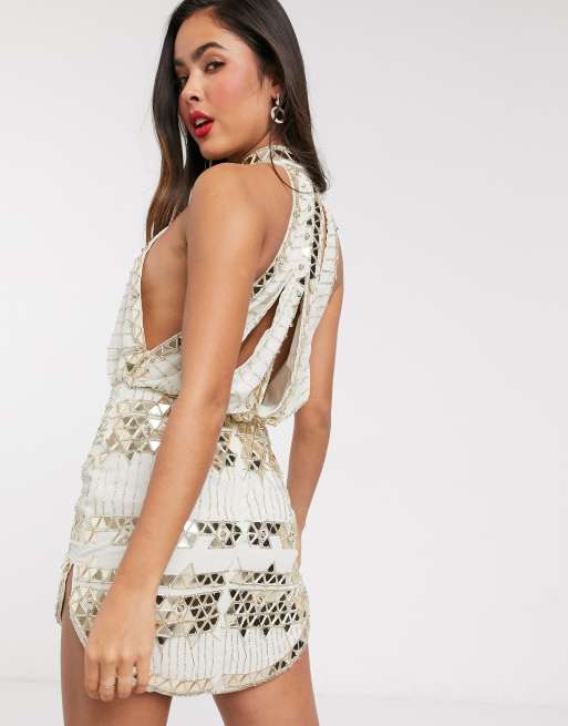 Charlyia white premium halterneck sequin tassel bodycon hot sale dress
