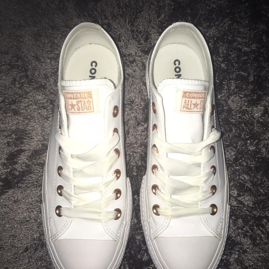 Product Item: Converse white leather rose gold hot sale eyelets