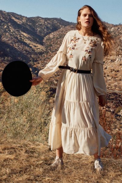 Cream embroidered maxi hot sale dress