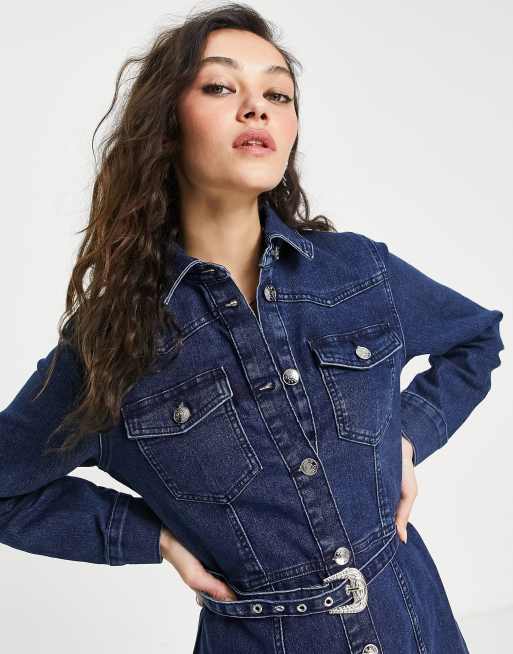 Dark blue denim shirt hot sale dress