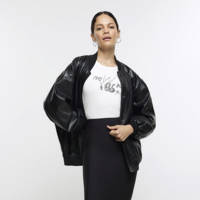 Fake leather bomber hot sale jacket