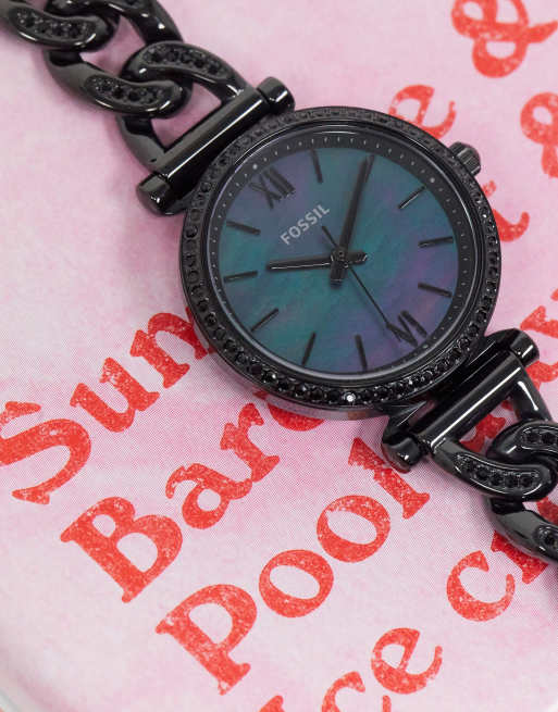 Fossil watch black hot sale chain