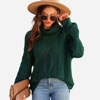 Green cable knit turtleneck hot sale sweater