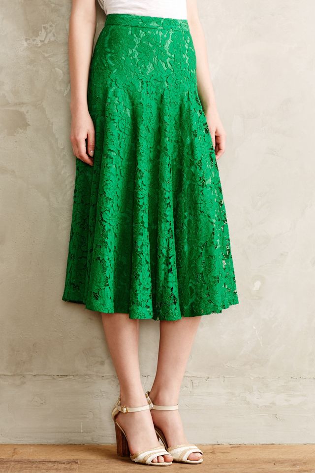Green lace midi hot sale skirt