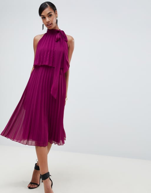 Halter tie neck hot sale midi dress in pleat