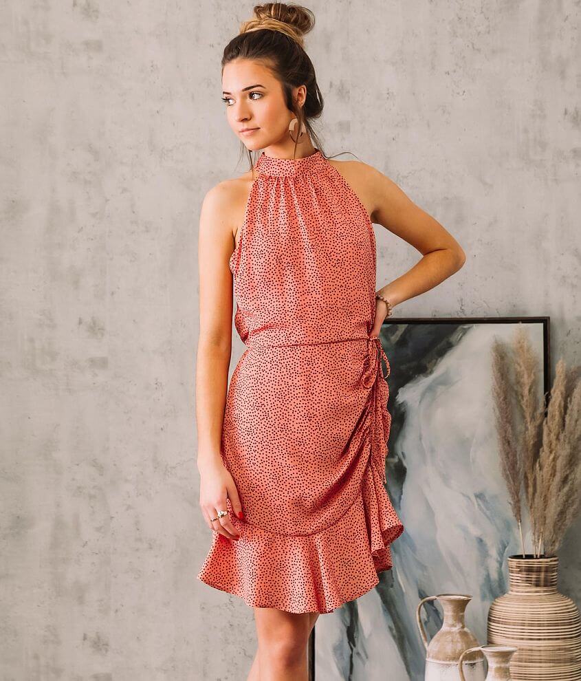 High neck ruched hot sale dress