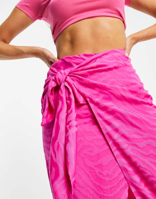 Hot pink silk midi hot sale skirt