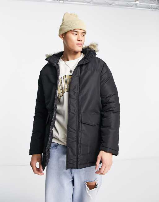 Jack & jones parka jacket hot sale with faux fur hood