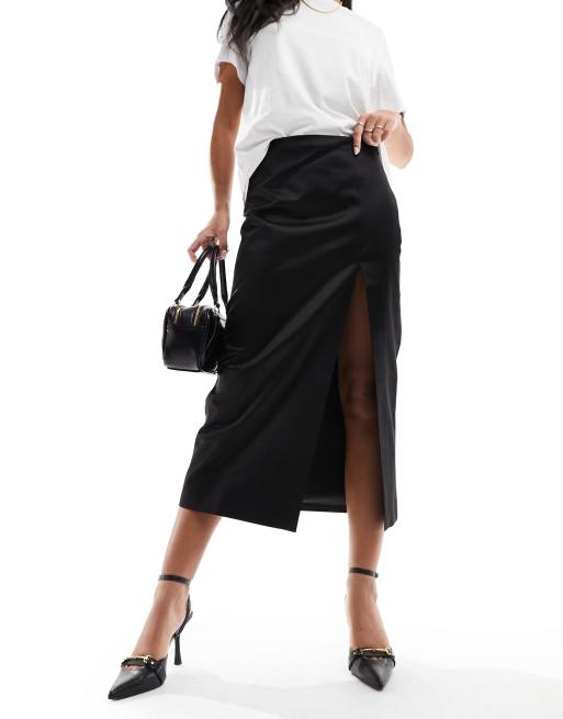 Jupe droite noire mi hot sale longue