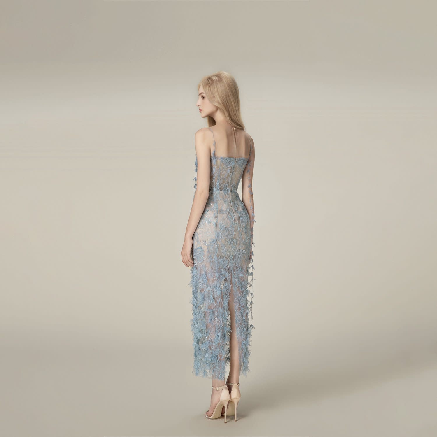 Lace and beads blue hot sale dress