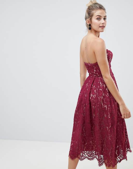Lace bandeau midi hot sale dress