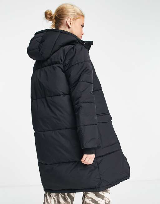 Long black padded hot sale coat