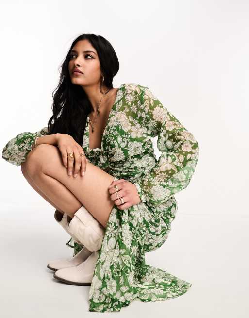 Mango green floral hot sale dress