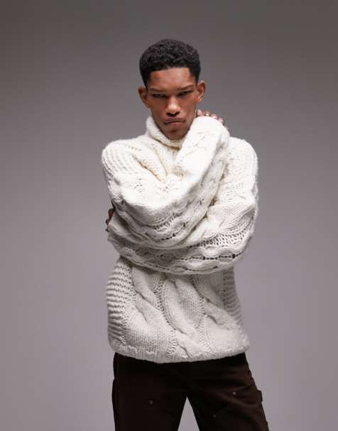 Product Item: Men's white cable knit hot sale sweater