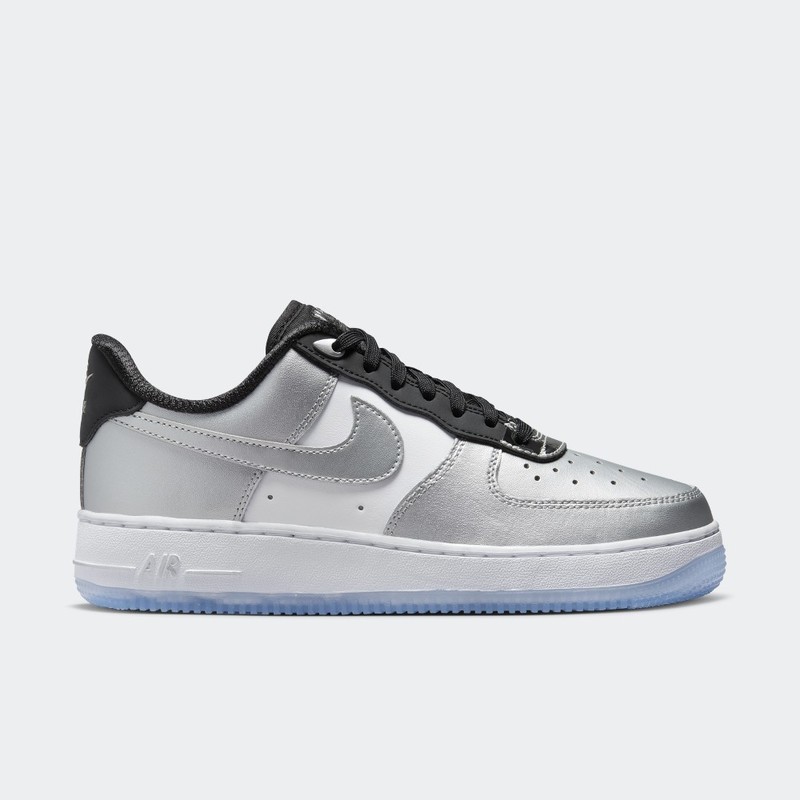 Metallic silver and hot sale black air force ones