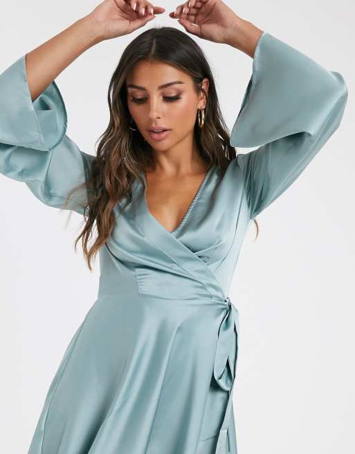 Missguided blue wrap hot sale dress