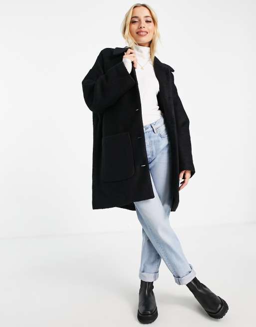 Monki long black hot sale coat
