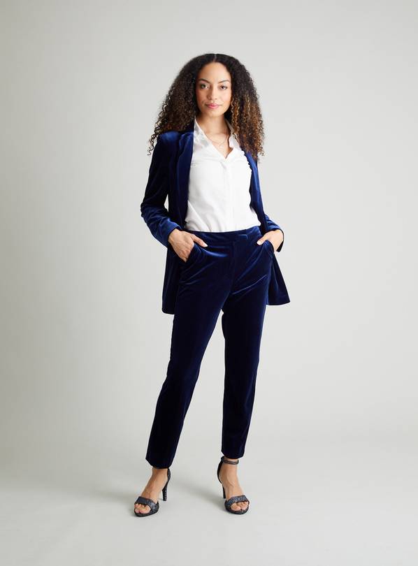 Navy velvet trouser suit hot sale ladies