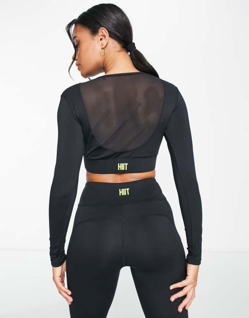 Nike training long sleeve mesh hot sale crop top in black