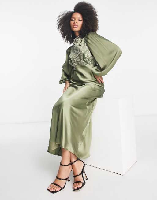 Olive green embroidered hot sale dress