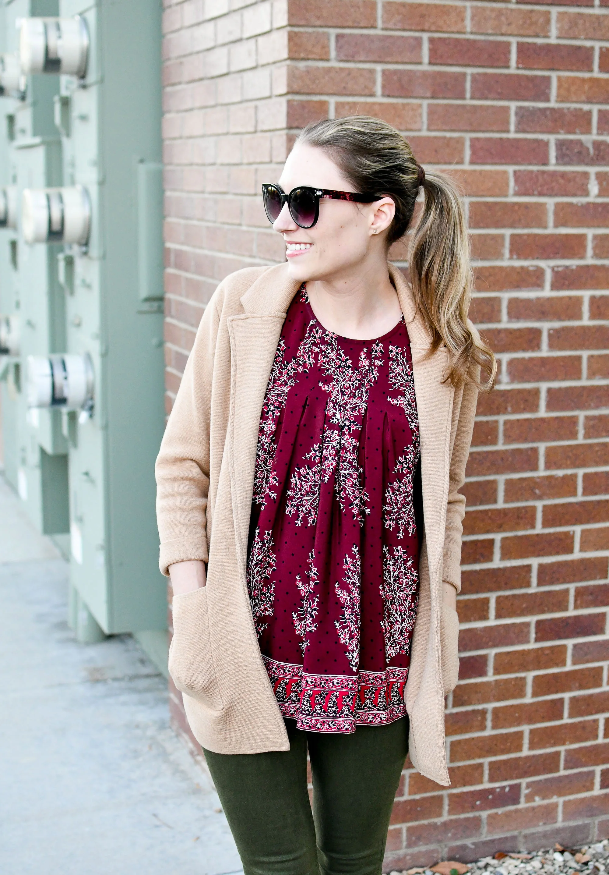 Outfits with burgundy hot sale sweater