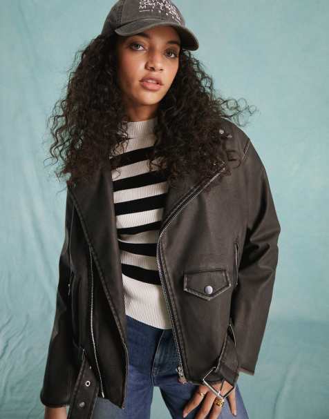 Oversized leather biker jacket hot sale womens