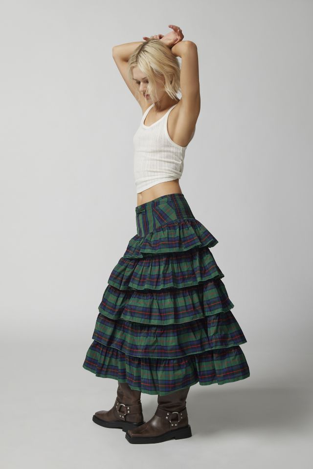 Plaid ruffle midi hot sale skirt