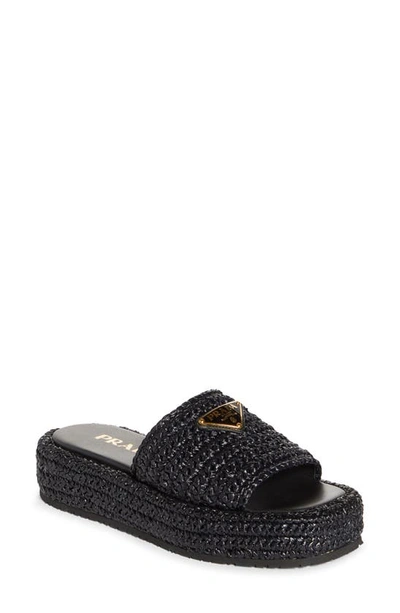 Prada raffia bow flat slide hot sale sandals