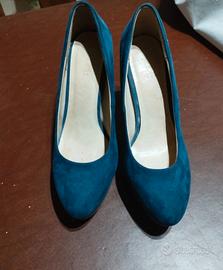 Scarpe blu con tacco e hot sale plateau