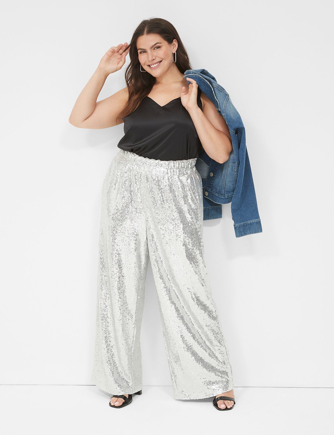 Sequin wide leg pants plus hot sale size