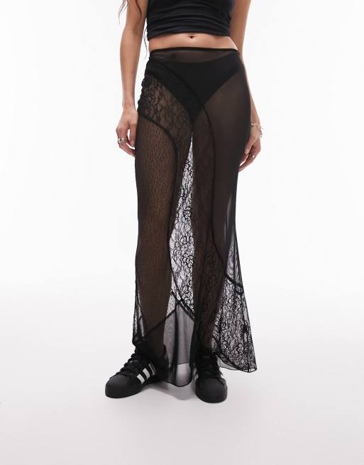 Sheer mesh maxi hot sale skirt