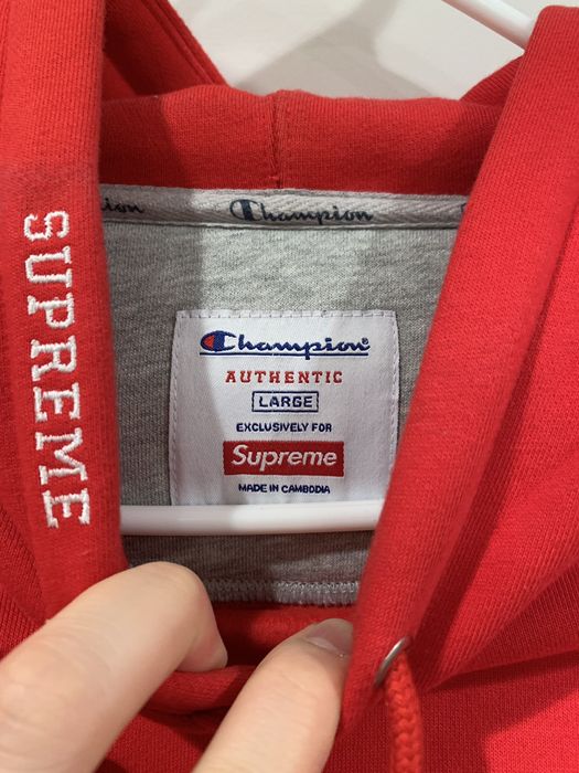 Supreme champion hoodie box hot sale logo