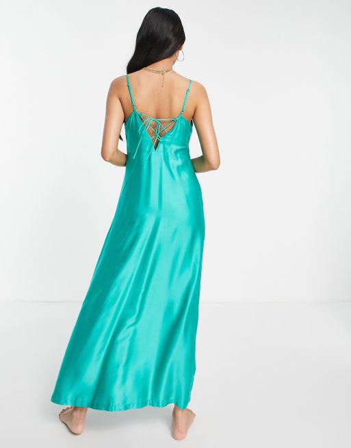 Teal satin slip hot sale dress