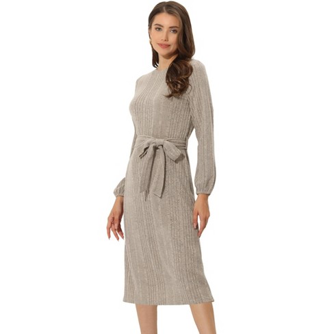 Tie waist long hot sale sleeve knit midi dress