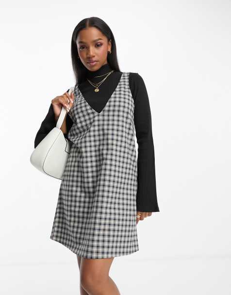 Topshop checked pinafore hot sale dress