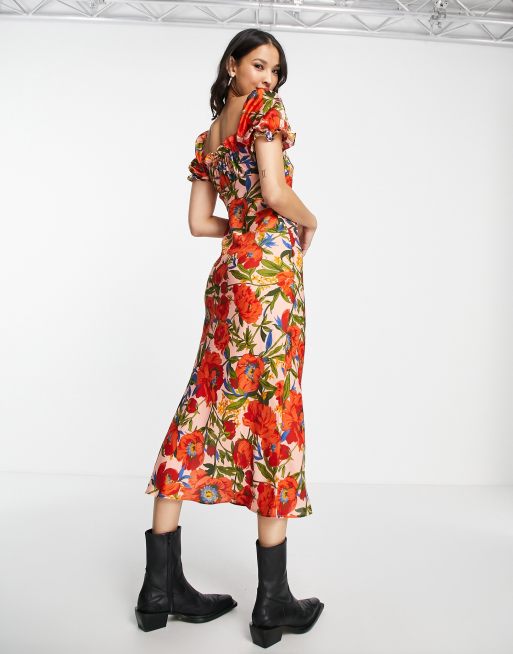Topshop floral midi hot sale dress