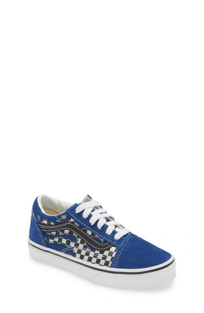 Vans blue checkerboard hot sale flame