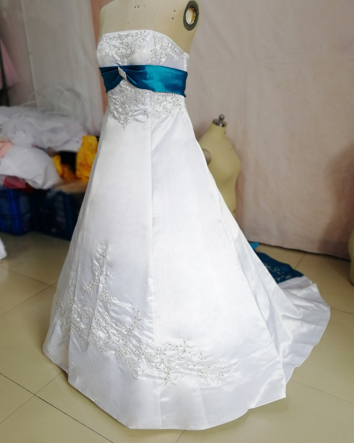 Product Item: Wedding dress with royal blue hot sale accents