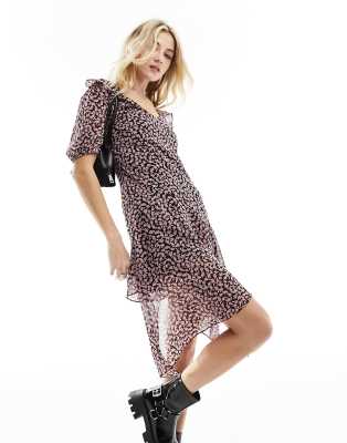 Wednesday's girl mini smock dress hot sale in ditsy print mesh